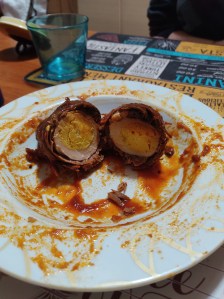 3 “bombe” (involtini di carne farciti con uovo sodo, uvetta e pinoli, pezzetti di salame e pecorino)
