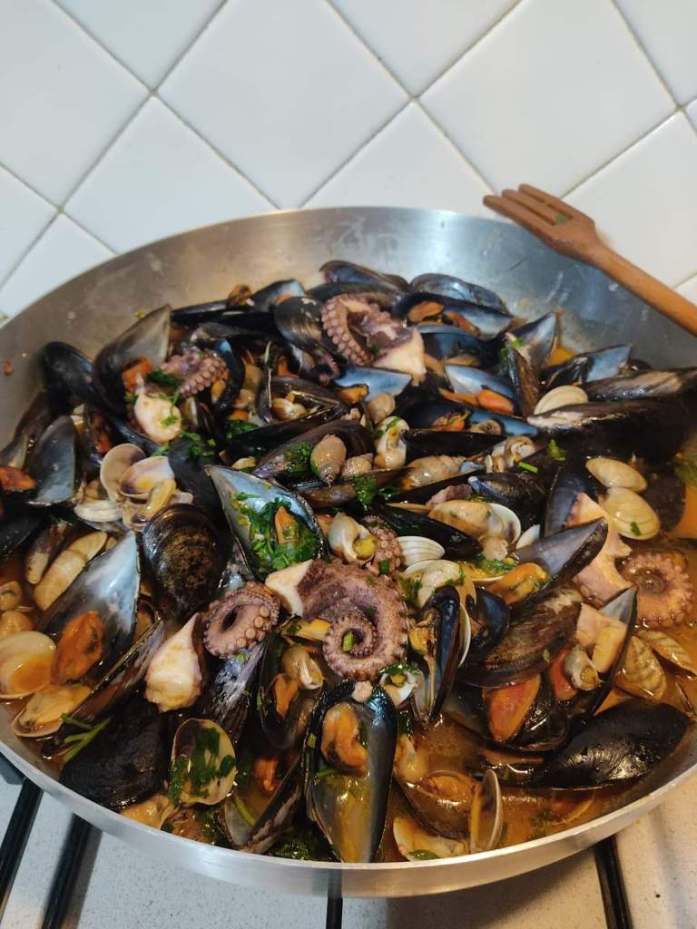 Zuppa di cozze alla napoletana (mancano gli scampi, perché non ci