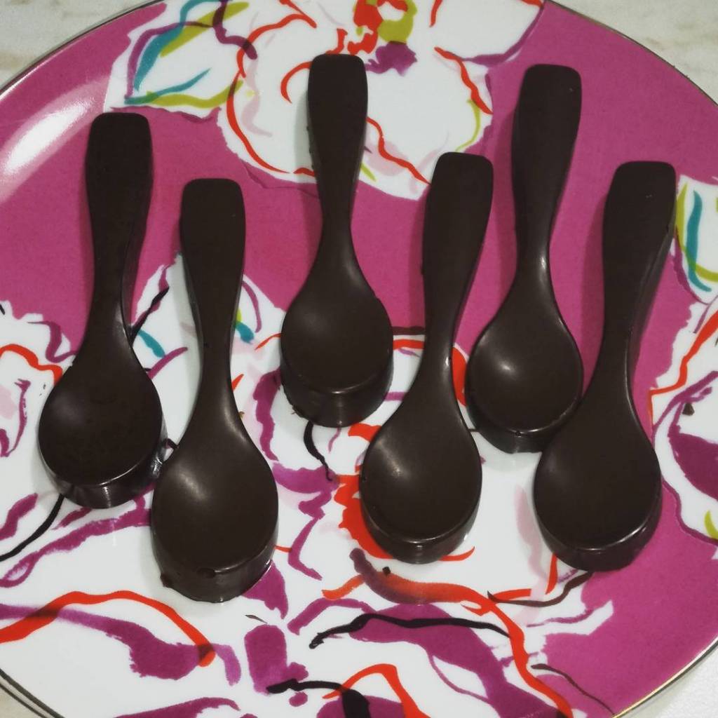 Se vi avanza del cioccolato, fondetelo a bagnomaria e mettetelo in degli stampi a forma di cucchiaio.