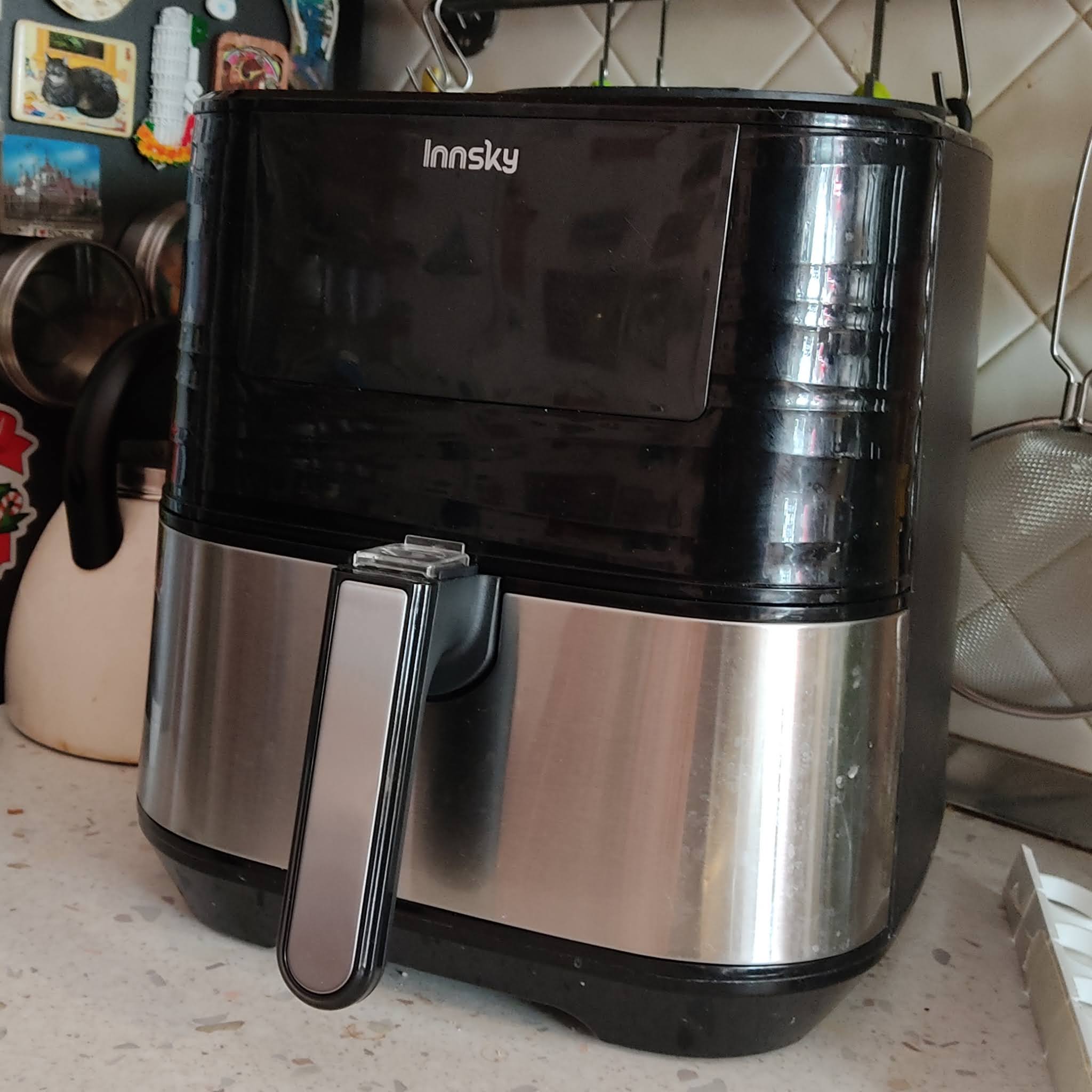 Infine la nuova arrivata in casa nostra, la friggitrice ad aria. Non frigge davvero, cuoce ad aria calda e fa meno male della vera frittura. La uso anche come fornetto ventilato e mi scaldo il pranzo, cuocio i cornetti surgelati, o quelli con la pasta sfoglia fatti in casa, faccio le patatine finto fritte. Promossa anche lei.